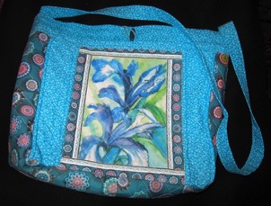 With a Print of Iris and Batik Material sides and strap.